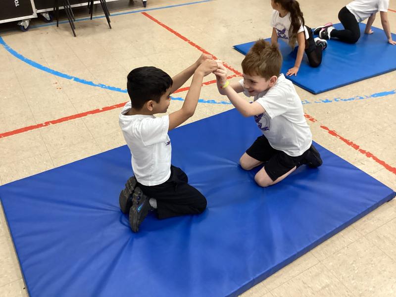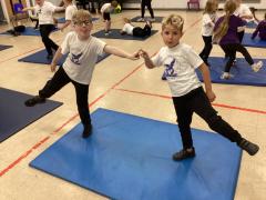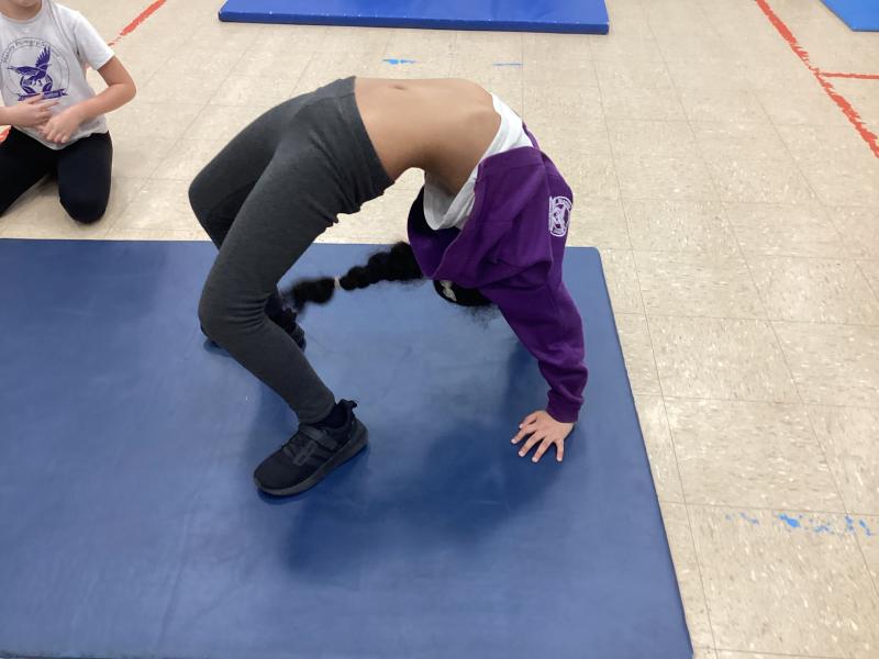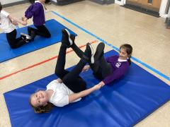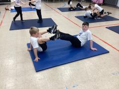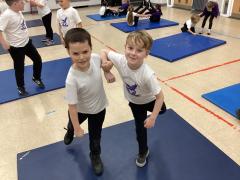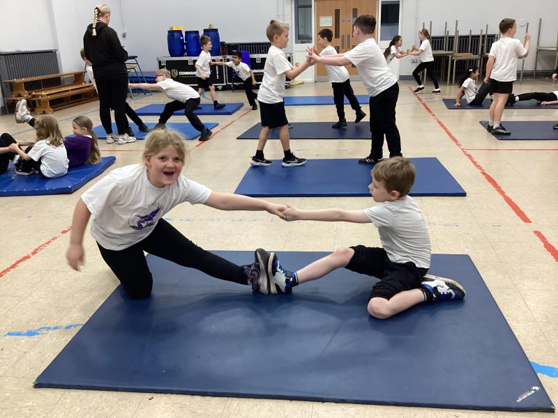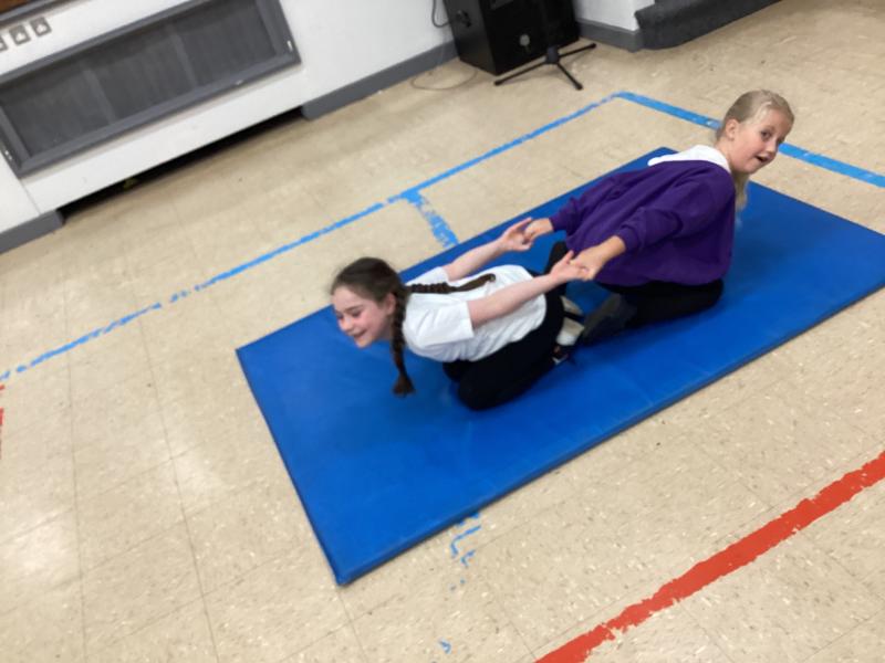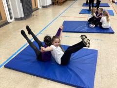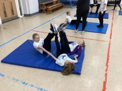 In PE the children have been exploring different balances using different body parts, both on their own and with a partner, where they used counter balancing.
