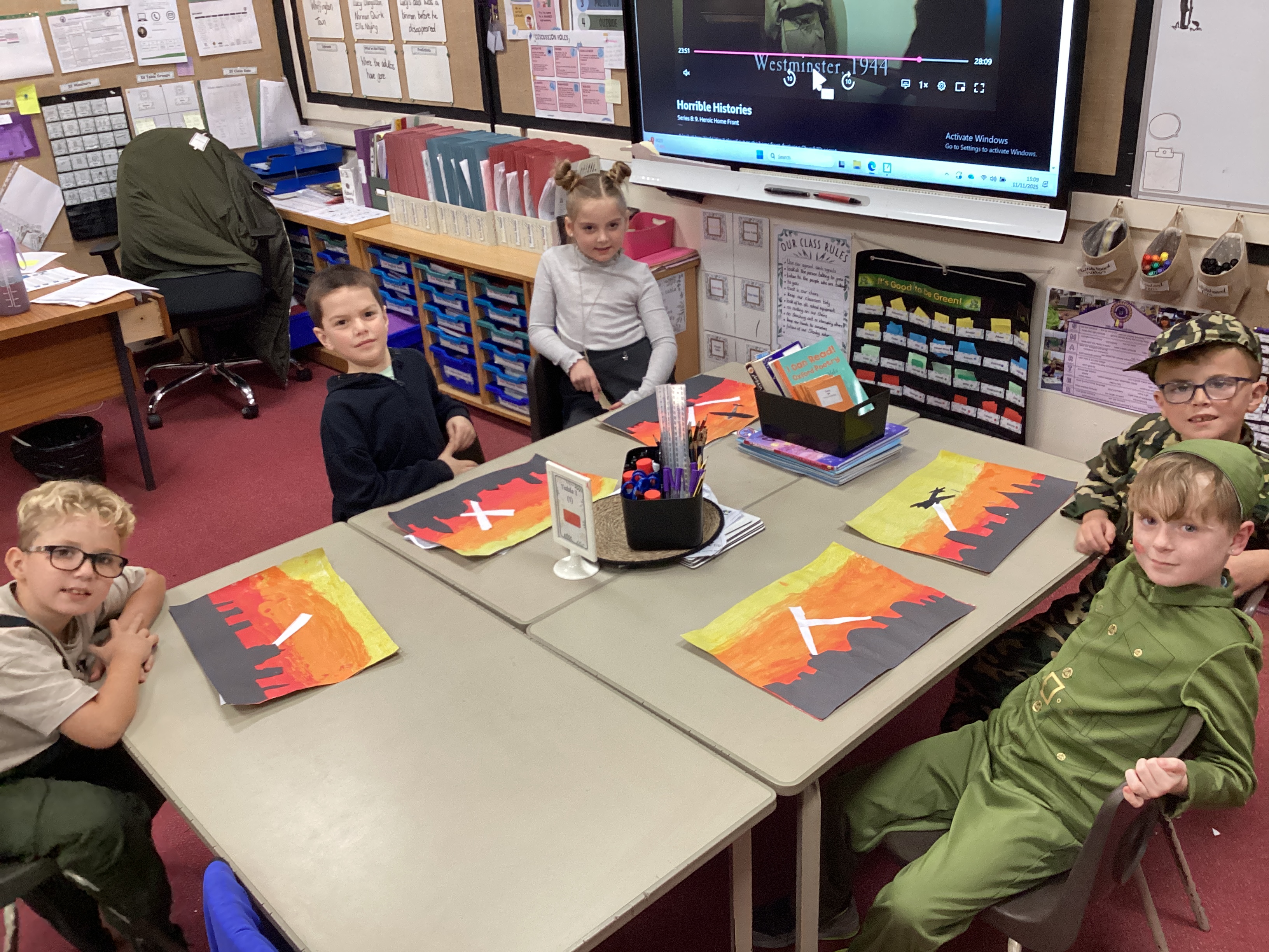 On Tuesday 11th November, our pupils commemorated Remembrance Day with lots of learning activties about World War 2 with a focus on 'The Blitz'. We wrote poems, explored images from that time and created a piece of art to represent what the London skyline would have looked like during those months.